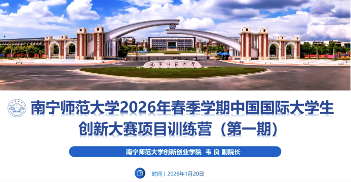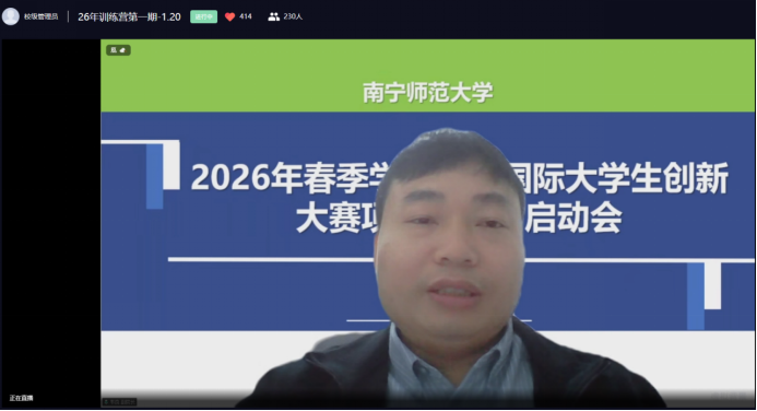 1月20日,我校2026年春季学期中国国际大学生创新大赛项目训练营顺利开营。本次培训由创新创业学院组织,500余名双创导师及学生备赛团队代表线上参训,学院副院长韦良主持并发言,国赛评委、获奖学生谢沛羲做经验分享。
